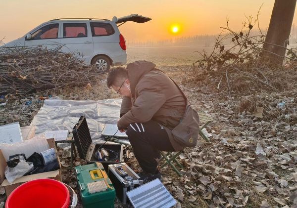 那时,他正作为黄河流域地下水国家地下水环境质量考核点位监测陕西三组组长,与同事郭春晖等一行从郑州赶赴西安,又驱车8小时到达陕西榆林,在严寒的冬季里争分夺秒地与时间赛跑,完成监测任务。